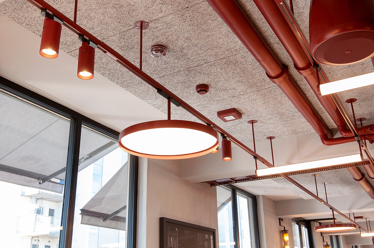 – Til dette prosjektet og et par andre prosjekter hadde vi i Light House i lang tid forsøkt å finne løsninger som var teknisk gode, dekorative og som innfridde BREEAM-kravene. Det vi fant var enten veldig kostbare eller kompliserte å montere. Vi bestemte oss derfor å gå i laboratoriet vårt på Kolbotn for å designe produkter selv. Det første fikk navnet LAB Pendel og ble starten på en hel serie med LAB-produkter. I prosjektet KRAFT har vi brukt LAB System, som er egenutviklede armaturer for skinnemontering i LAB-serien.