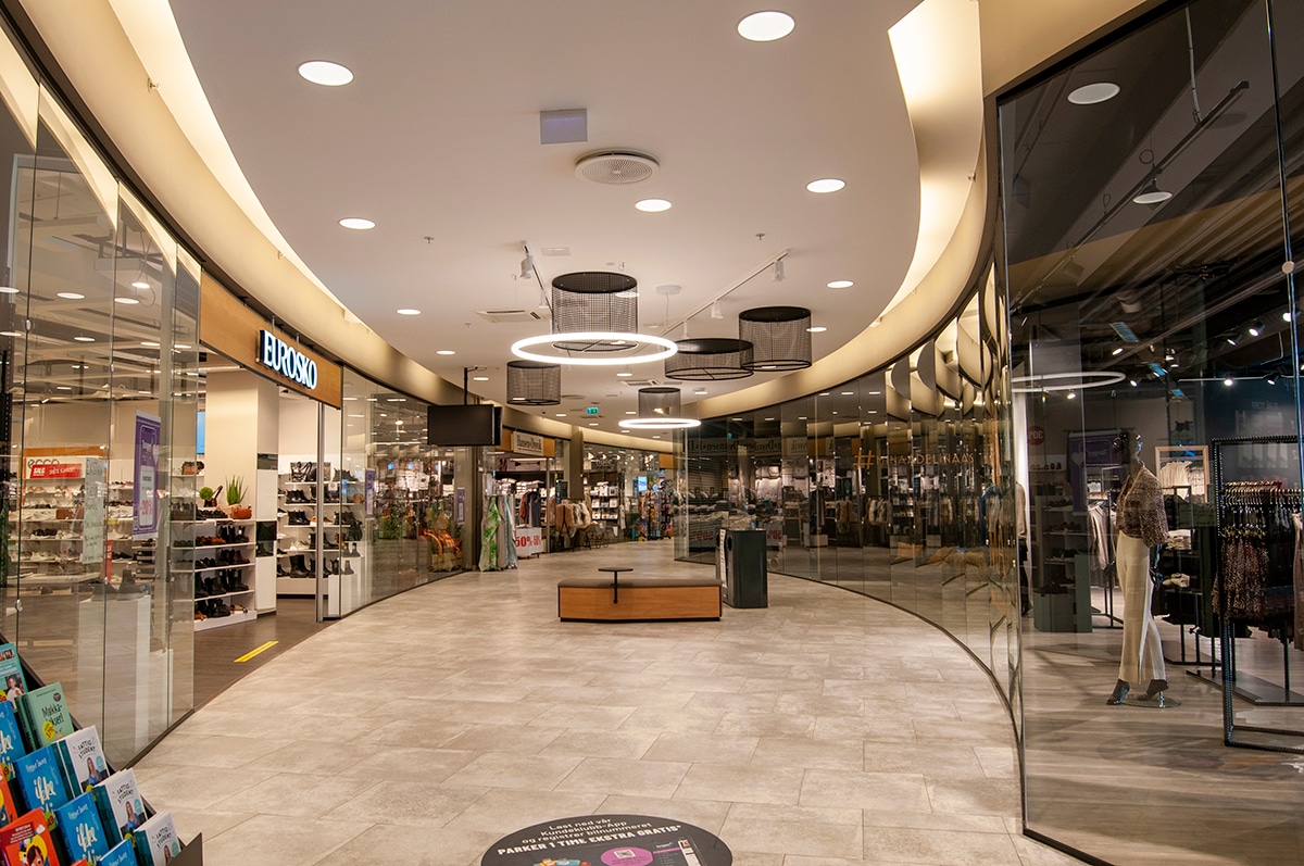 Light House har belyst hele Tangen Senter, bl.a med spesiallagde downlights.